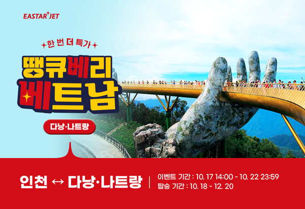 이스타항공 관계자는 “베트남의 인기 여행지인 다낭과 나트랑 노선의 프로모션인 만큼 이번 프로모션이 베트남 여행을 준비 중인 고객분들에게 좋은 기회가 되길 바란다”고 말했다.